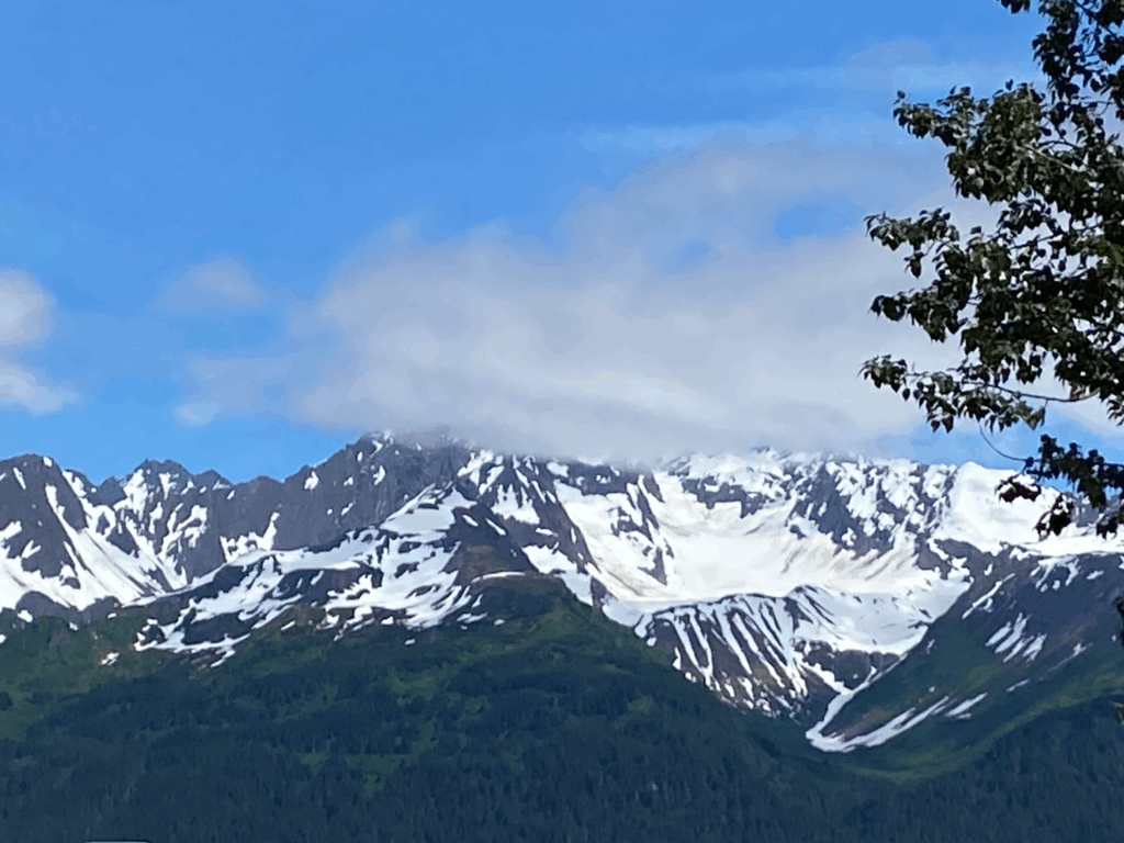 Finally, here is a picture that Arlene took of Alice Mountain from Seward. It is in the clouds but you can just make out the outline of the mountain.