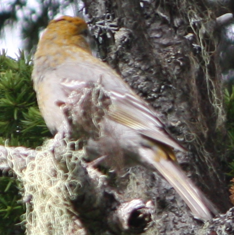 On the way back down I snapped a picture of this guy which I think is a Pine Grossbeak: