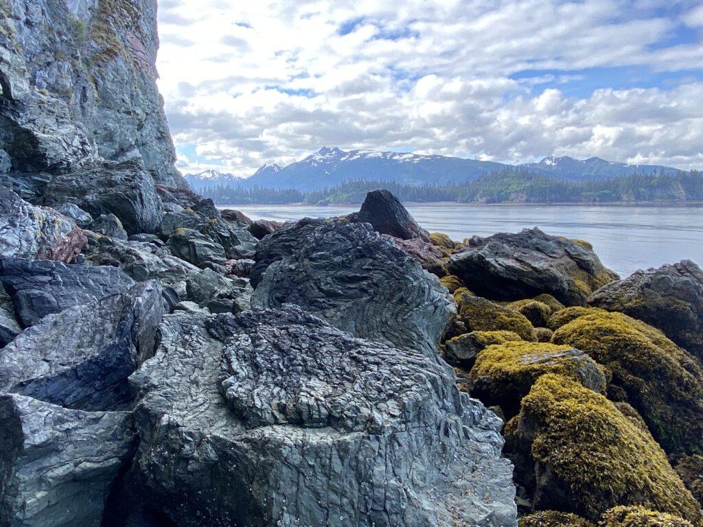 We stopped for a snack back on Yukon Island where there was, apparently, a nest of a Peregrin Falcon. But we didn’t see it. Many of the rocks were geologically interesting since some had been formed long ago in the south pacific and slow migrated north.