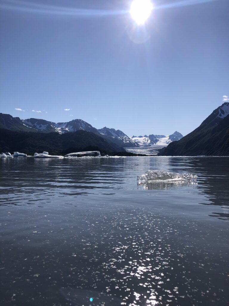 The lake was amazing. This is one of the few occasions when the picture actually seems to capture the experience. By the way, the captain of the water taxi mentioned how oddly cloudless was the sky. The weather was freakishly good. The ice in the lake and the glacier on the far side were spectacular. Arlene said, “Wow, wow, wow.”