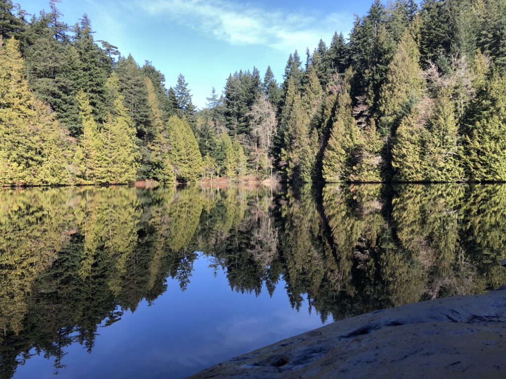 We decided to drive up toward Bellingham and avoid I-5. We went up Chuckanut where I used to ride my bike. The terrain is funny because it changes from completely flat to mountainous in an instant. We were thinking that we’d make our way over to Lake Padden, but found some other nice looking trails around Larrabee State Park. We chose a trail up to Fragrance Lake. The whole path was about 4.5 miles and Strava said the elevation was a bit over a 1000 feet. It was a nice looking lake: